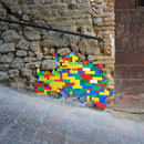 Plastikbausteine werden verwendet um Löcherin schadhaftem Mauerwerk zu füllen. Mithilfeder großzügigen Unterstützung von Stiftungen,Organisationen und vielen Einzelpersonen prägten sich ein weltweites, partizipatives Eventund Netzwerk aus.